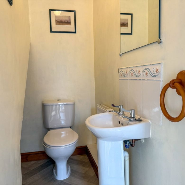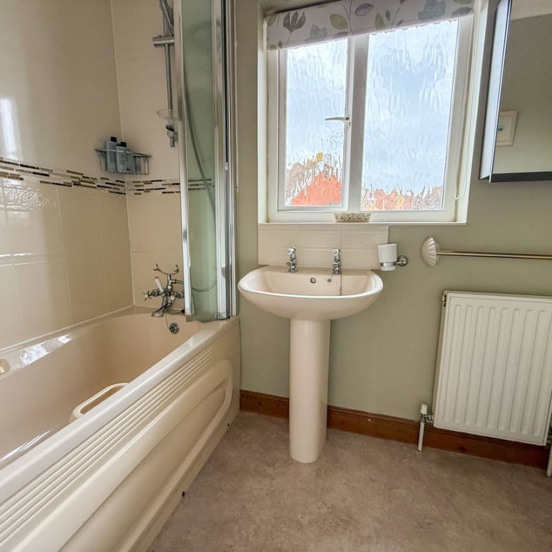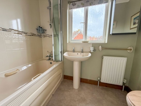Upstairs, the master bedroom benefits from two built-in wardrobes and its own en-suite shower room. A further double bedroom, a good-sized single bedroom, and a modern family bathroom complete the first floor.