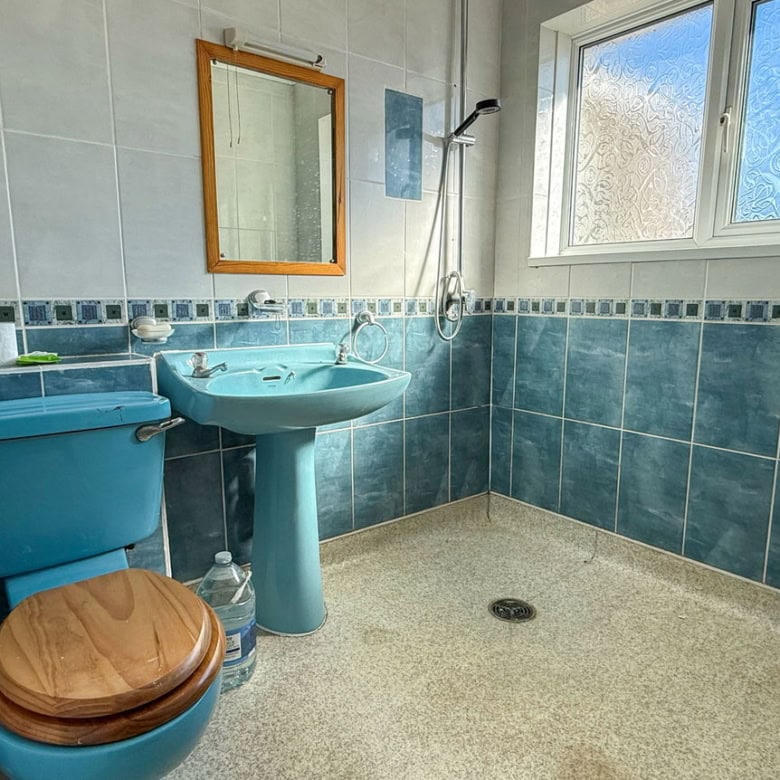 Wet room with shower, basin and WC