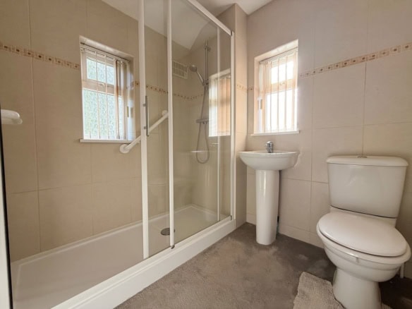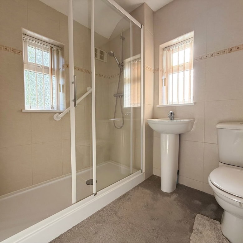 Upstairs, you’ll find two double bedrooms, a comfortable single bedroom, and a modern family bathroom with a walk-in shower.