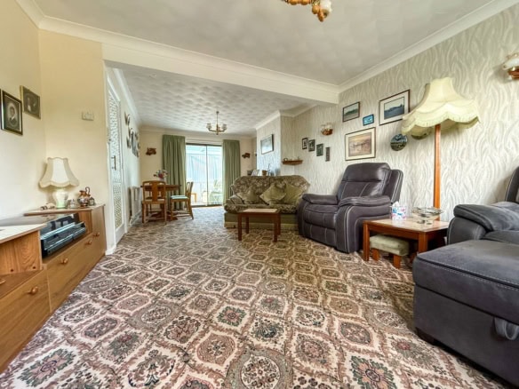 The property welcomes you with a large porch and hallway, leading through to a bright and airy kitchen and a versatile living/dining room. To the rear, a conservatory provides a perfect space to enjoy views of the garden year-round.