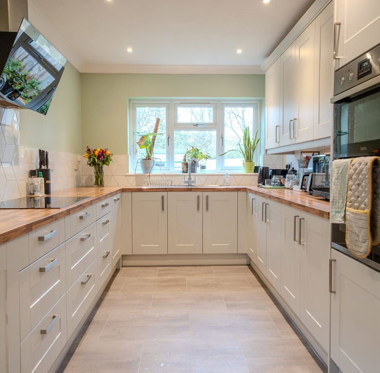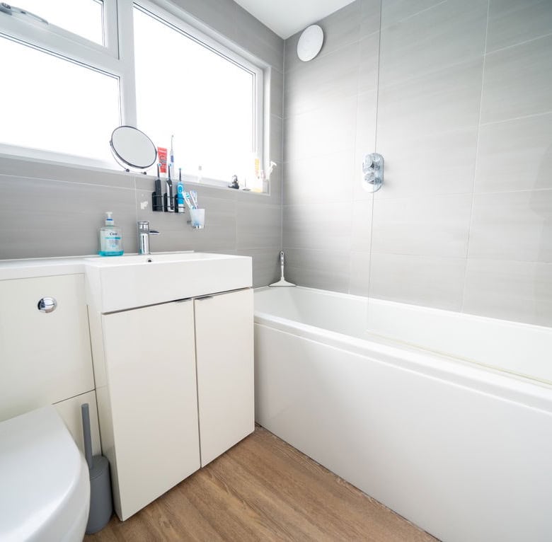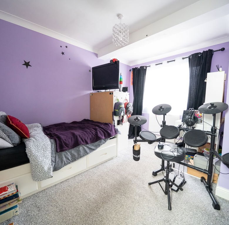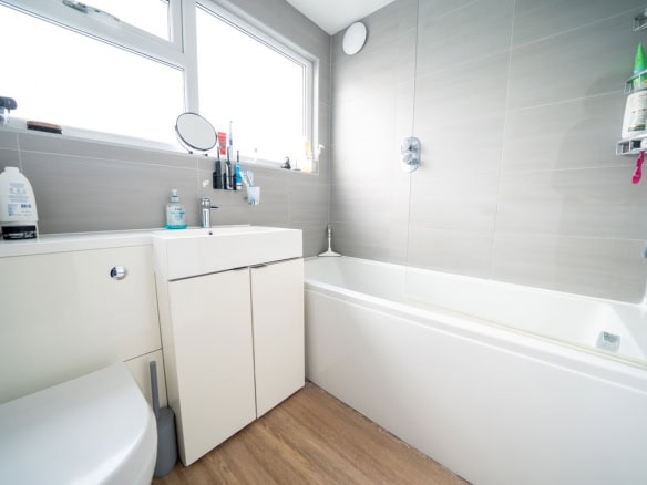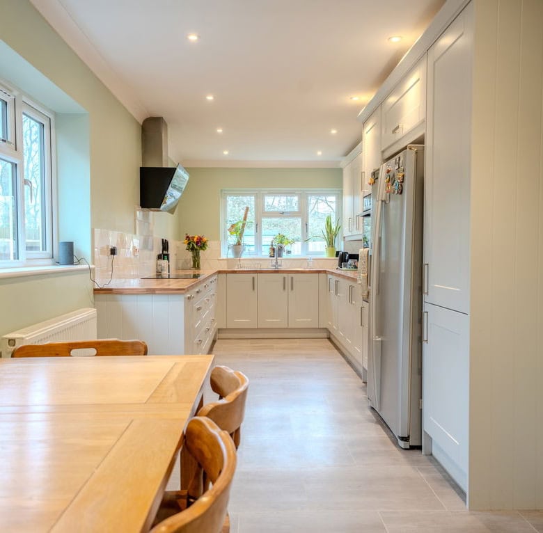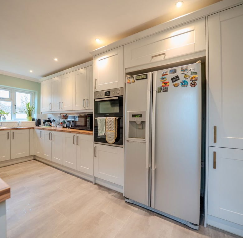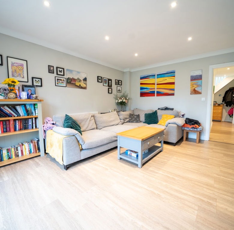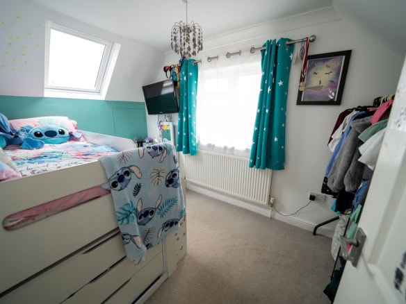 To the rear of the property is a large kitchen dining room which forms the heart of the home, offering ample space for family life and entertaining. Adjoining this is a substantial living room, also positioned at the rear, with French doors opening directly onto the garden, creating a seamless connection between indoor and outdoor living. To the front of the house is a further reception room which would work equally well as a sitting room, home office or playroom. The ground floor also benefits from a useful utility area, a downstairs WC and a ground floor bedroom, providing flexible accommodation for guests, multi generational living or working from home.