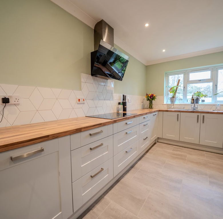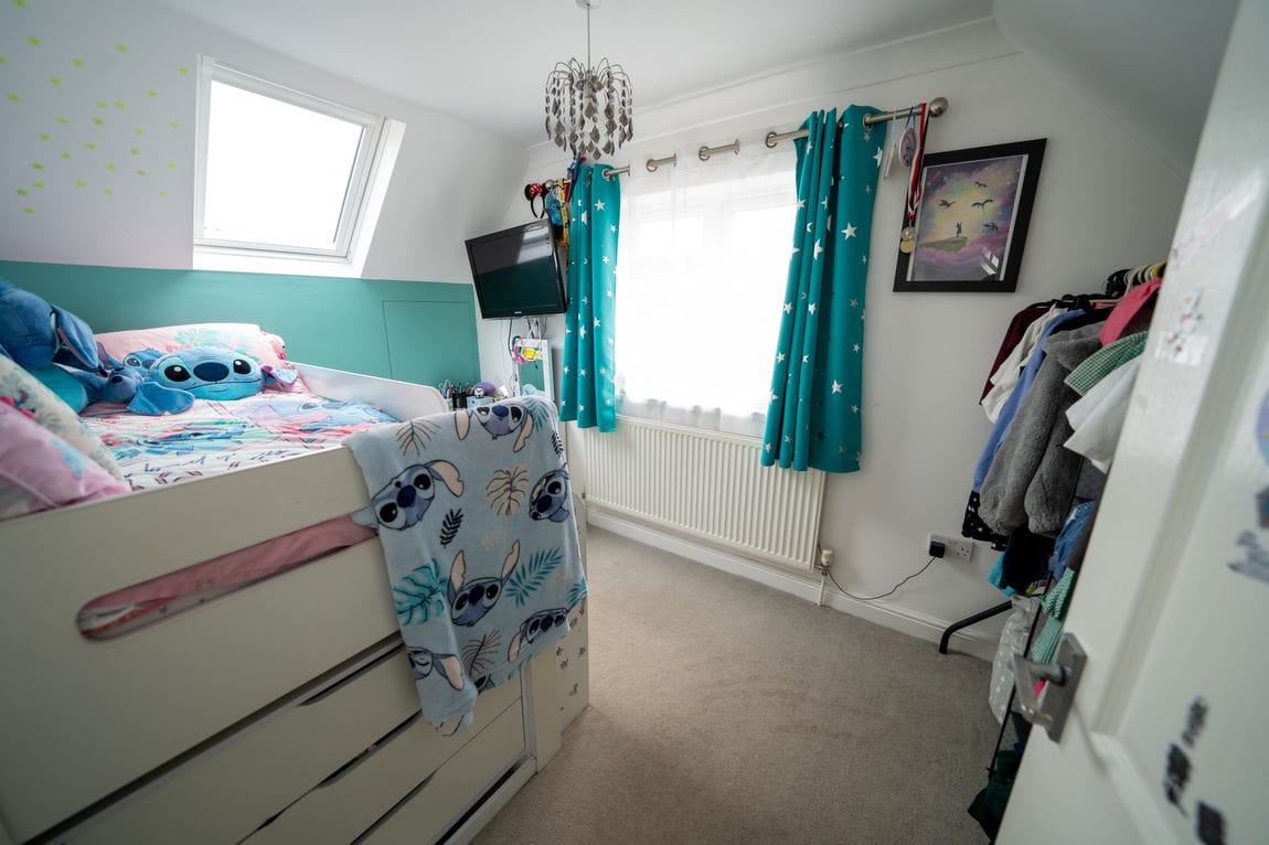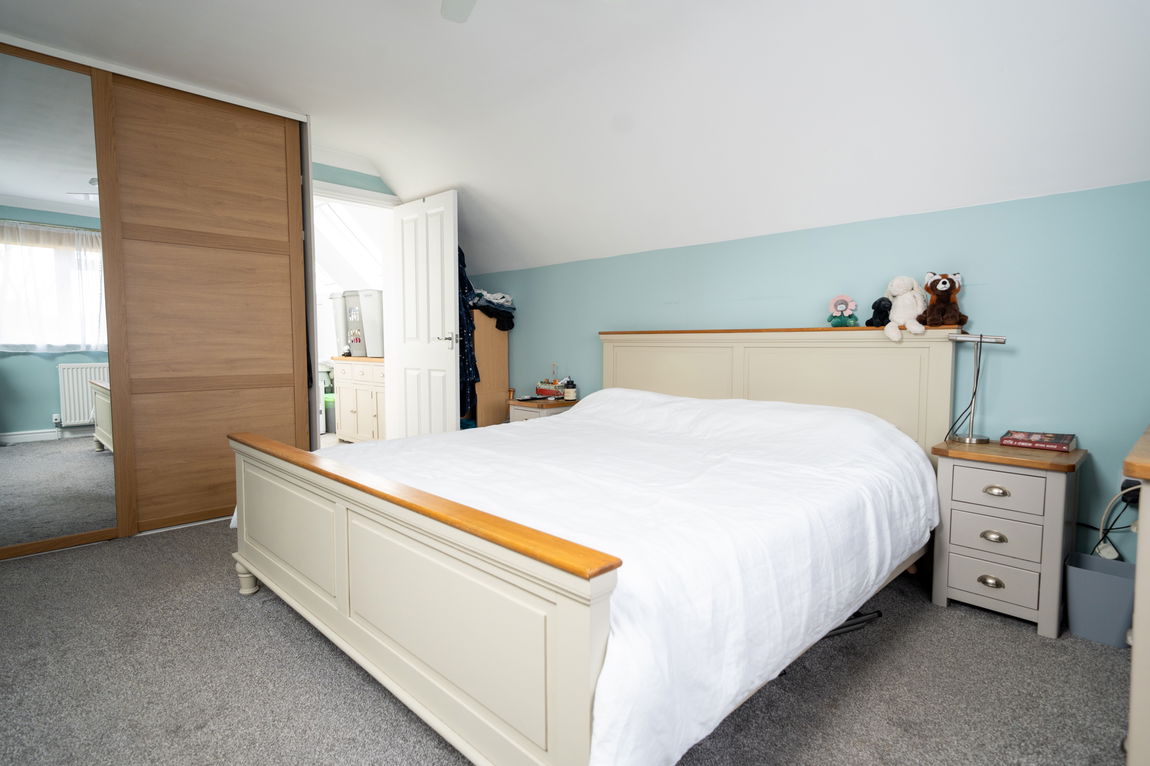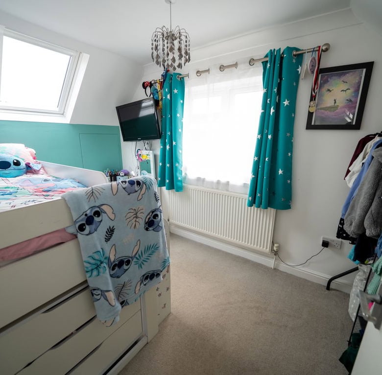 Upstairs, the property continues to impress with three generous double bedrooms. The main bedroom enjoys the benefit of an en suite shower room, while the remaining bedrooms are served by a family bathroom. The upstairs landing is a particular feature, flooded with natural light from Velux skylight windows, enhancing the bright and airy feel throughout the first floor.
