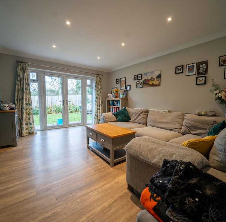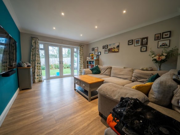 - Spacious rear living room with French doors opening onto the garden