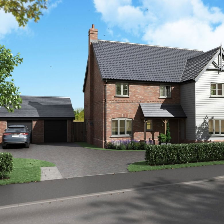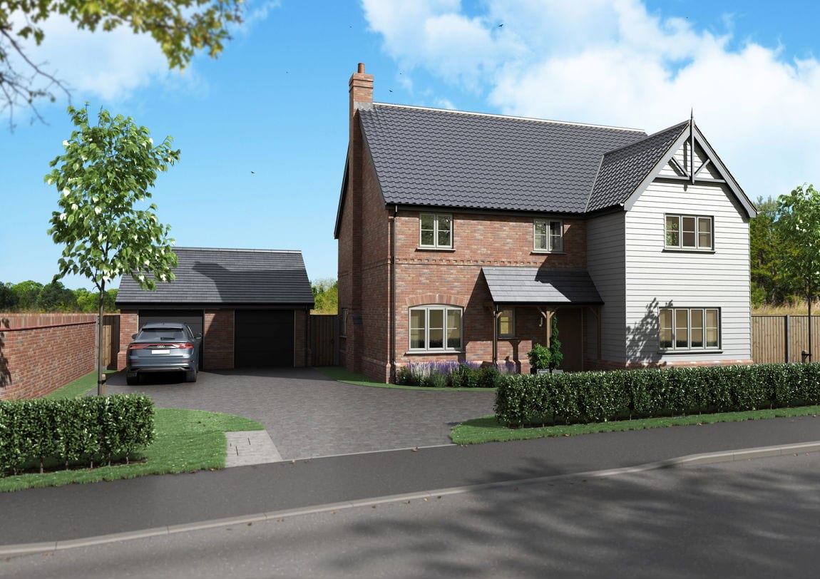 Plot 1 is one of the most luxurious properties within the prestigious Sky View development — a substantial five-bedroom home set on its own private driveway with a double garage and larger-than-average garden. From the carefully designed frontage, blending traditional brickwork with weatherboard cladding and an oak-framed porch, through to the bespoke finishes inside, this is a residence defined by craftsmanship and attention to detail.