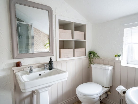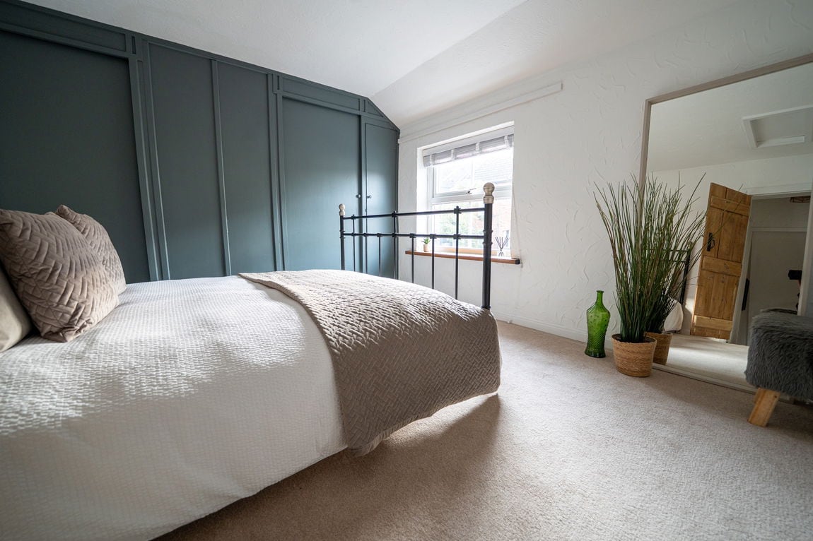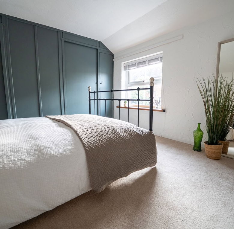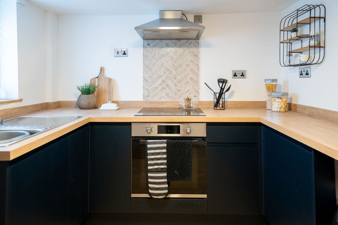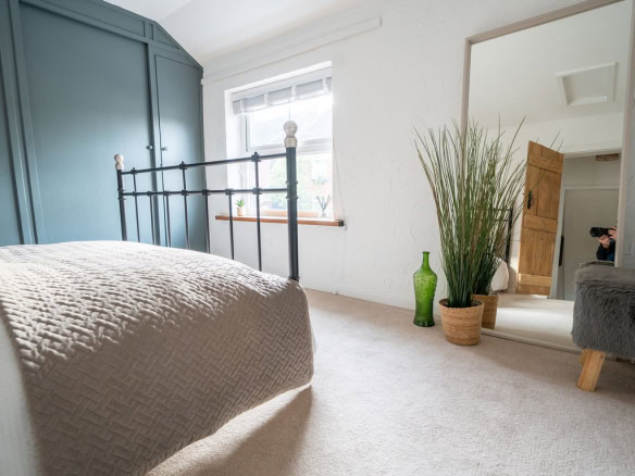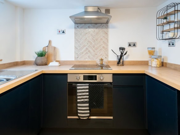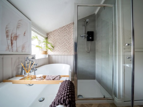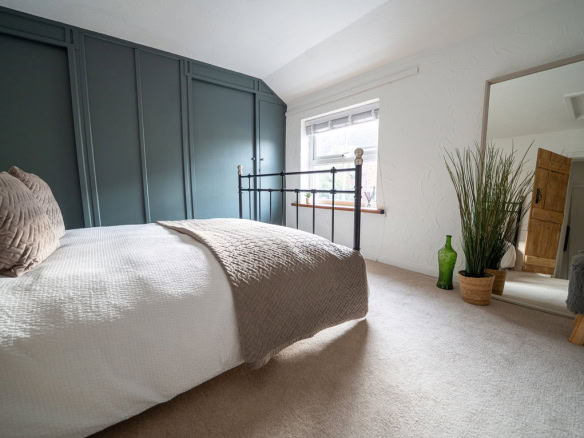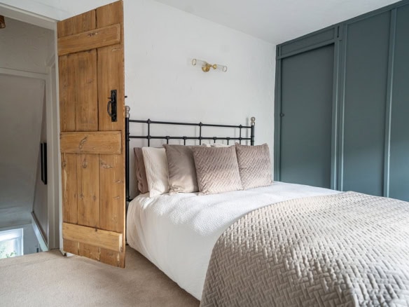 The bathroom is a real standout, featuring a freestanding bath, separate walk-in shower, and elegant finishes that rival those found in boutique hotels. The double bedroom offers generous space and includes fitted wardrobes for sleek, built-in storage.