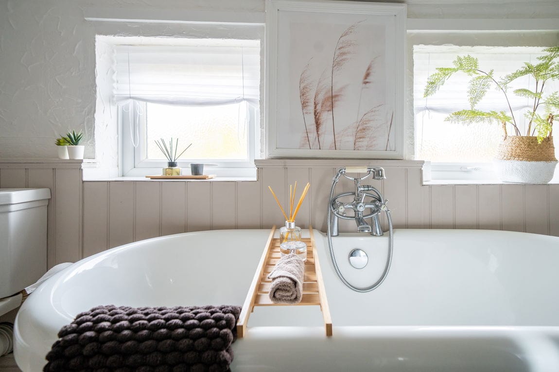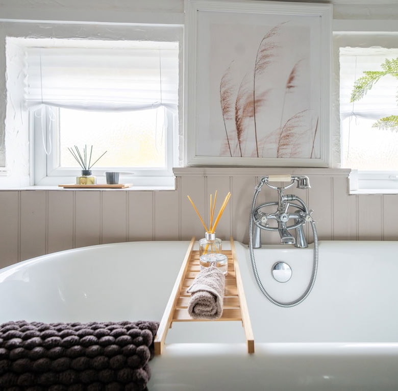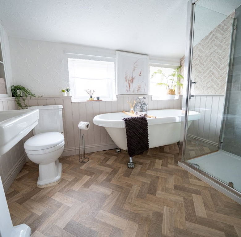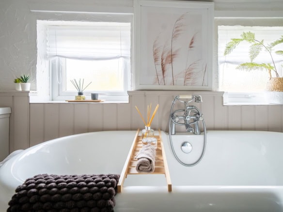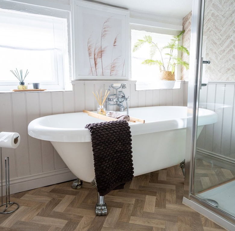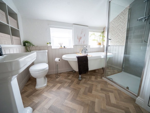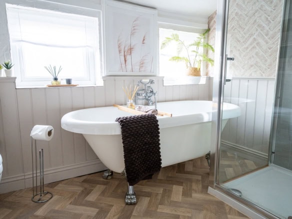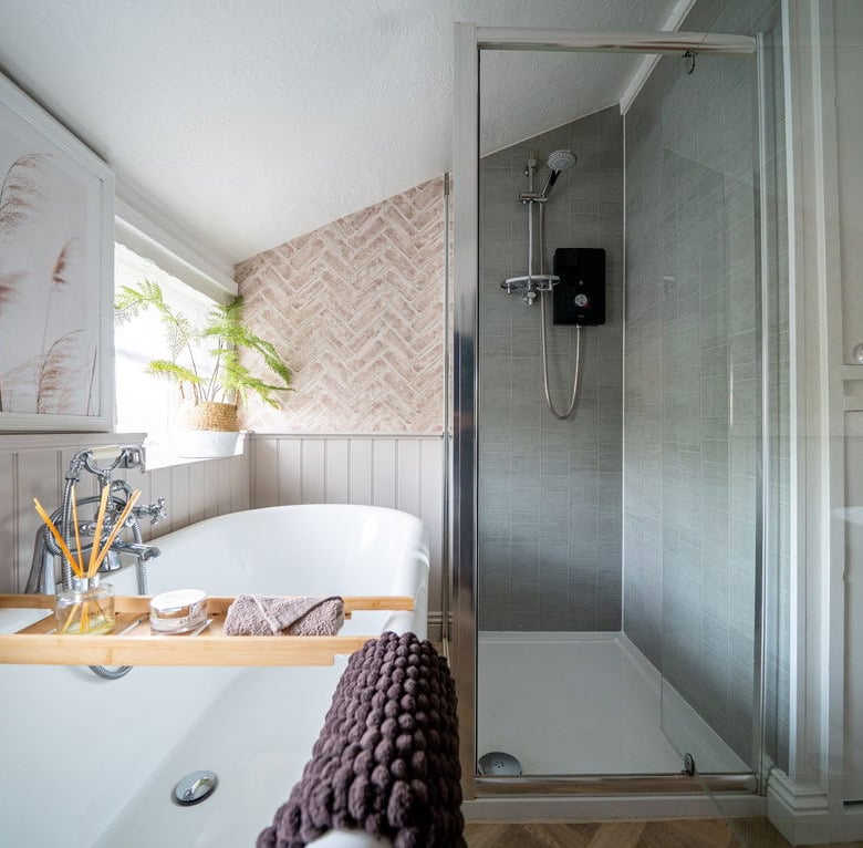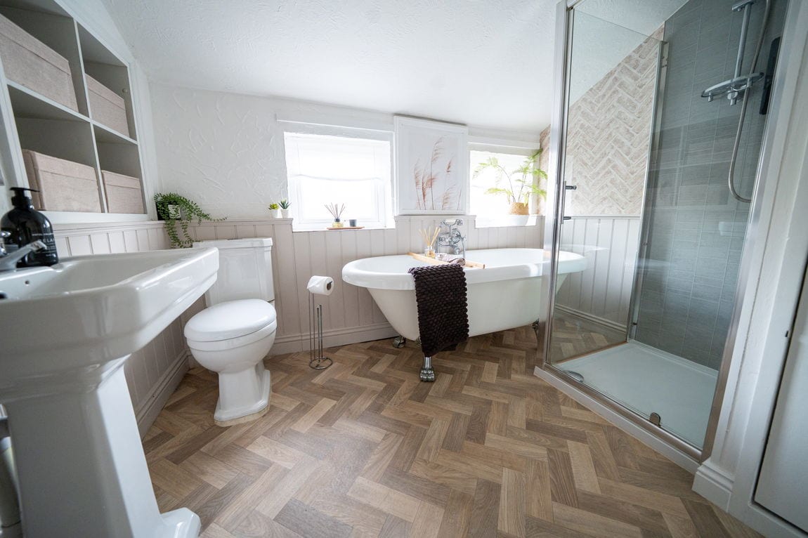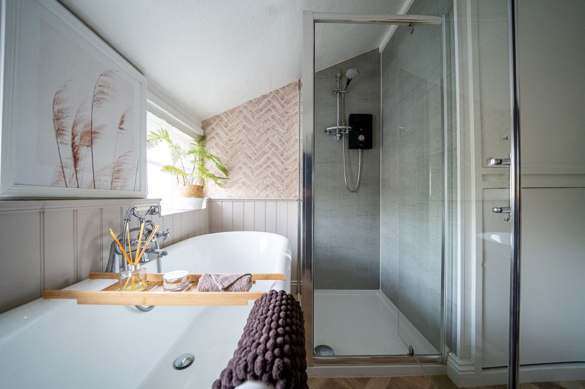 - Luxurious bathroom with freestanding bath and separate walk-in shower