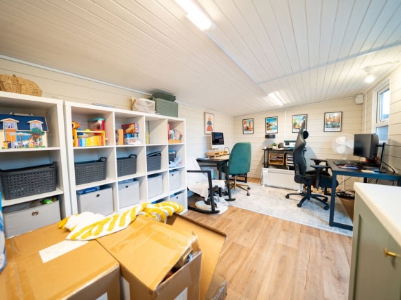 Externally the south facing garden is a real feature, offering a private and sunny outdoor space. A large outbuilding with French doors currently serves as a stylish and practical home office but could easily be adapted to suit a variety of uses.