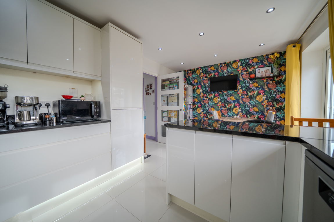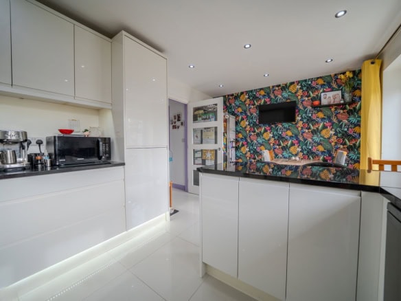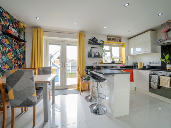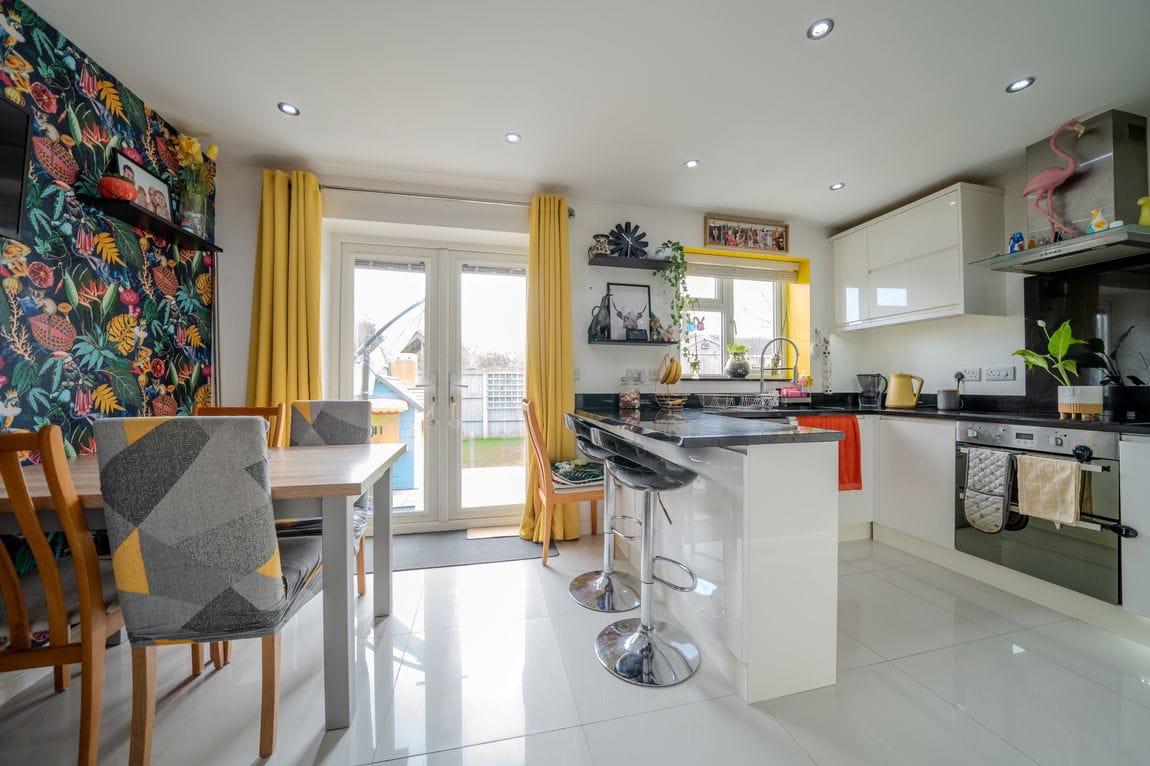 To the rear of the property is a modern kitchen dining room which has been fitted with contemporary units and integrated appliances, with plenty of room for a dining table. French doors open directly out to the rear garden which makes it a great space for day to day living as well as entertaining.