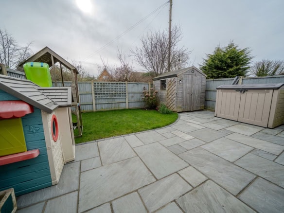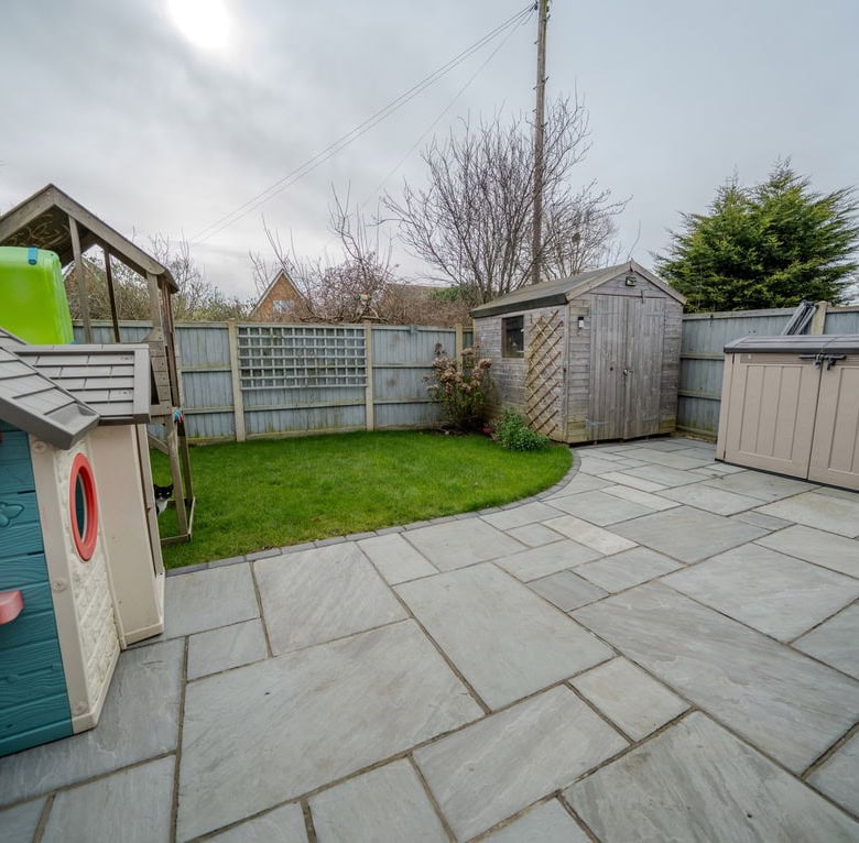 Outside the property sits on a generous plot with a large driveway to the front providing off road parking for several vehicles. The rear garden has recently been landscaped with a patio seating area, lawn and planted borders, creating a private and manageable outdoor space.