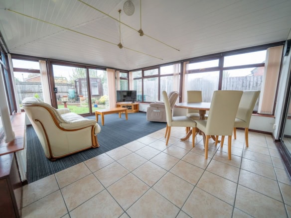 The property features two spacious double bedrooms along with a modern kitchen and a large living dining room that creates a warm and welcoming heart to the home. One of the standout features is the exceptionally spacious conservatory that spans the rear of the property, adding valuable additional reception space and providing a wonderful area to relax or entertain while overlooking the garden.
