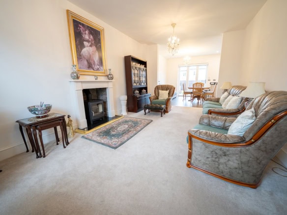 At the heart of the property is a large, beautifully designed kitchen/diner – the ideal space for cooking, hosting, or everyday family life – complete with sleek units and bifold doors that open onto the south-facing garden. It’s bright, social, and the true hub of the home. To the front, a separate living room offers a peaceful retreat, perfect for relaxing evenings or movie nights. Downstairs you are also greeted with a large hall area with WC and storage cupboards.