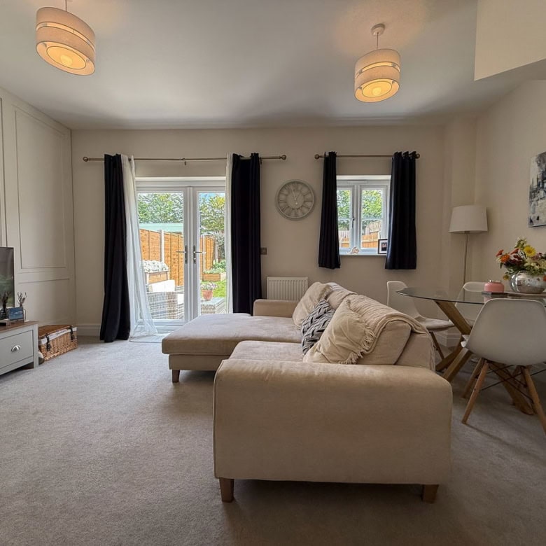 The heart of the house is a large, modern kitchen, perfect for cooking and entertaining, with an adjoining living/dining room that opens beautifully for relaxed evenings or hosting guests. Upstairs, you’ll find two generous double bedrooms, including a principal bedroom with en suite, and a contemporary family bathroom.