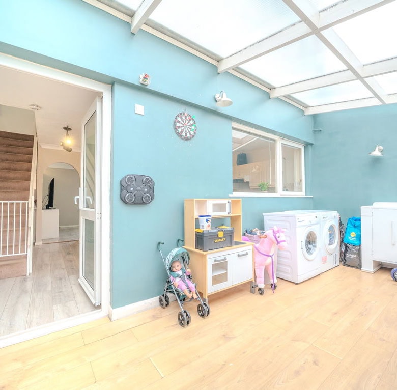 To the back of the house, a sizeable conservatory offers additional reception space overlooking the garden. Whether used as a second sitting room, playroom or home office, it adds real flexibility to the layout.