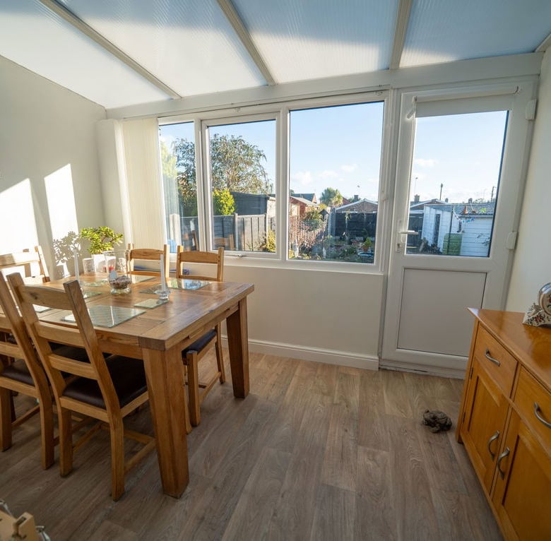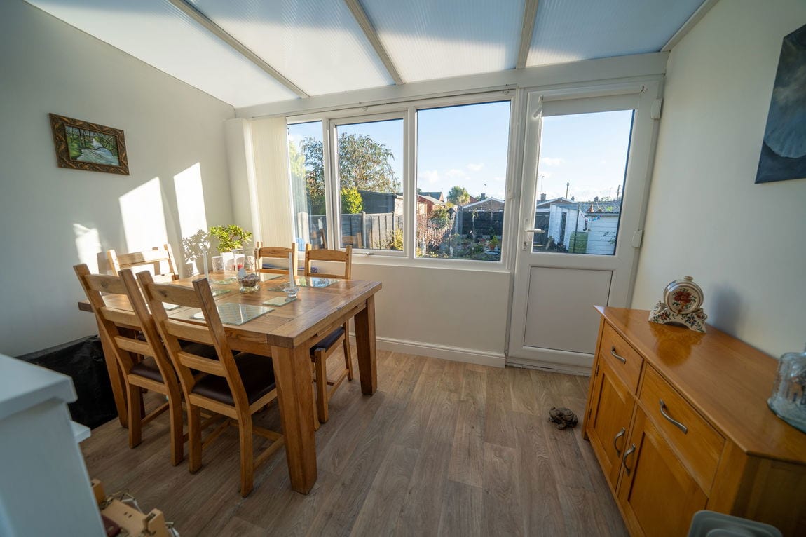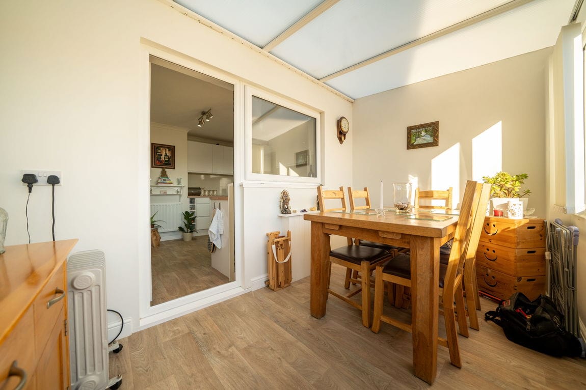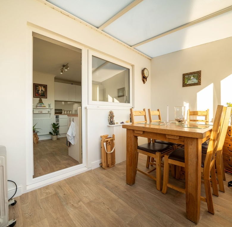 To the rear, a lean to conservatory area currently used as a dining room adds further flexibility and makes an ideal spot for entertaining or relaxing while looking out to the garden.