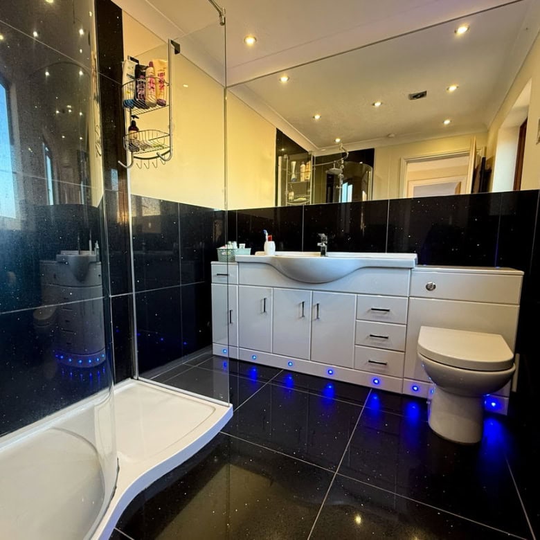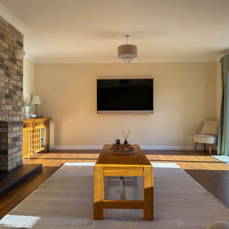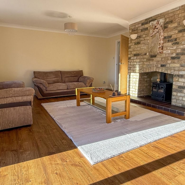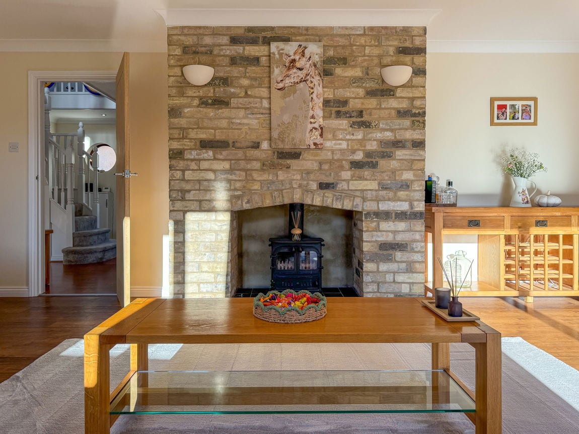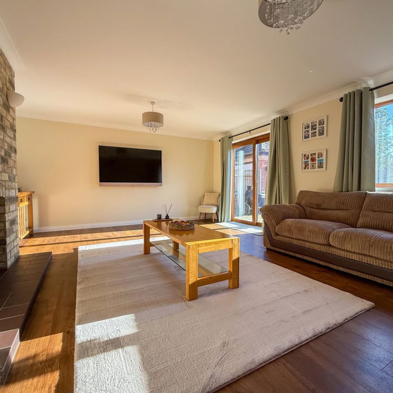 To the rear of the home sits the spacious lounge, complete with an impressive feature fireplace and patio doors leading out to the garden. This truly feels like the heart of the home, a warm and welcoming space for everyone to come together.