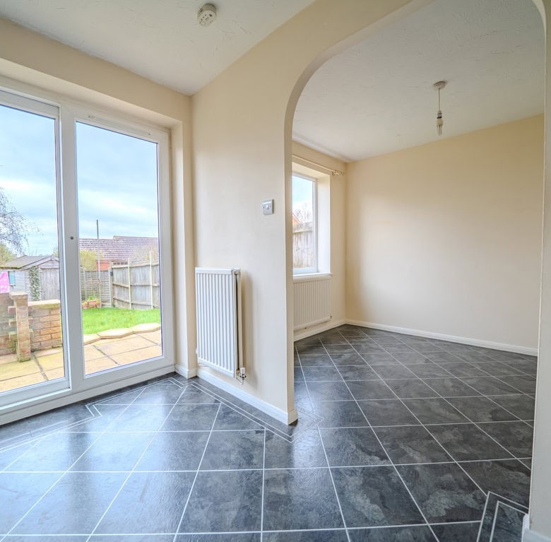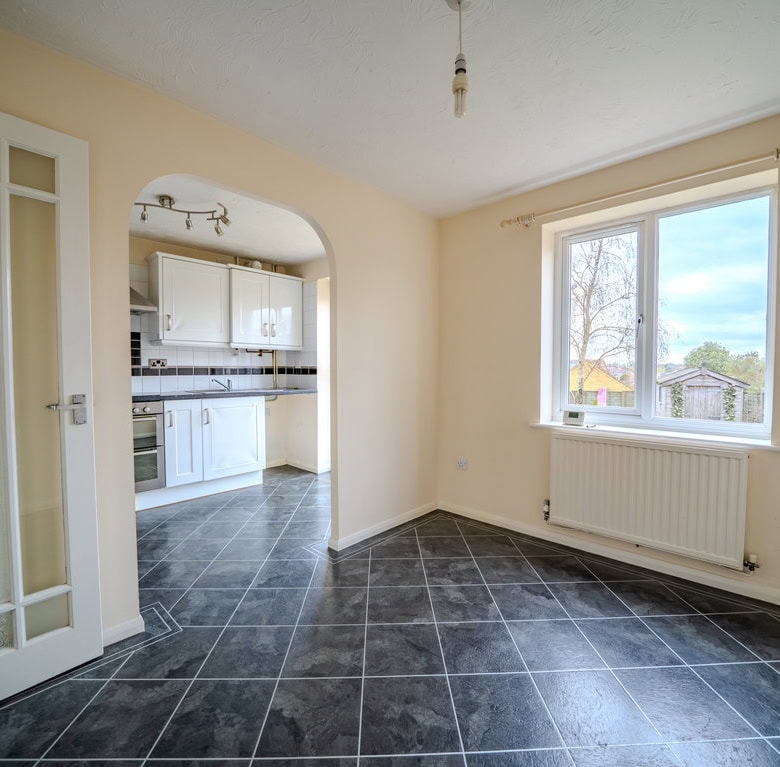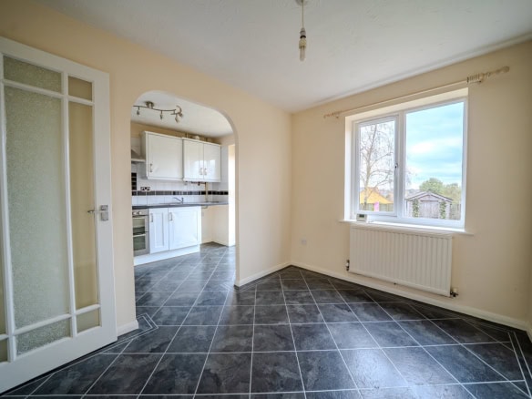 Continuing through the ground floor, the layout flows nicely into a separate dining room, creating a great space for entertaining or family life. From here, the kitchen is positioned to the left and features patio doors opening directly onto the rear garden, allowing plenty of natural light in.
