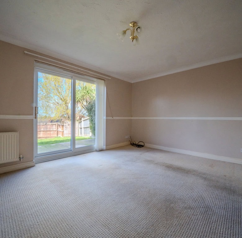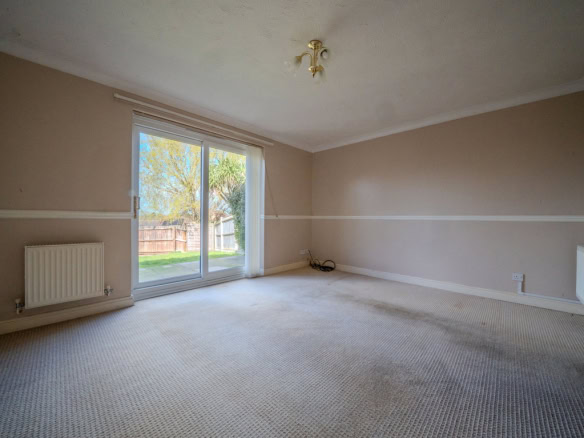 To the rear of the property sits the main living room, a generous space with large patio doors that open directly out to the garden, allowing for plenty of natural light.