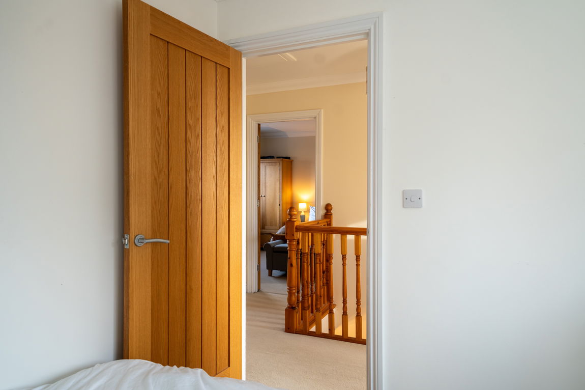 Upstairs, a traditional staircase opens onto a spacious landing, giving access to the principal bedroom with en suite shower room, two further well proportioned bedrooms and a modern family bathroom.